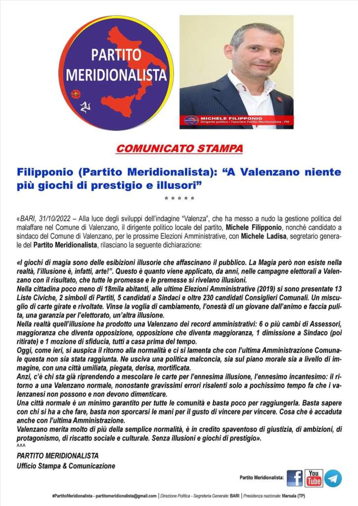 Rincaro bollette, Filipponio (Partito Meridionalista) denuncia