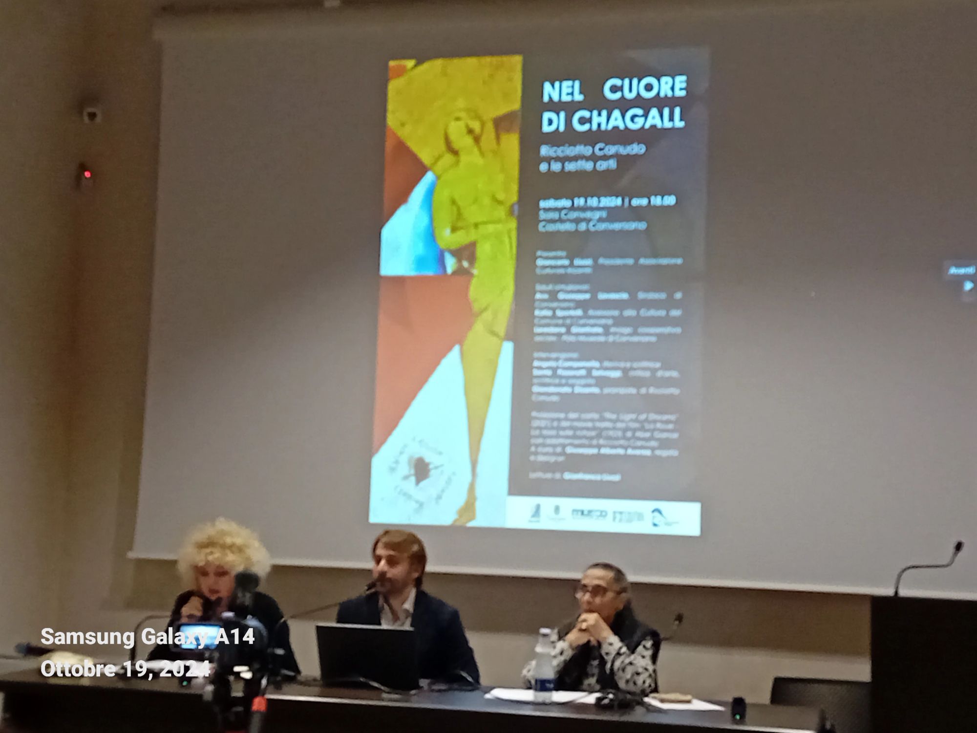 La sala Convegni del castello di Conversano ha ospitato ,sabato 19 Ottobre,”nel cuore di Chagall…Ricciotto Canudo e le sette arti ” l ‘evento promosso dall’Associazione culturale Incontri che ben si relaziona con la mostra d’arte “Chagall – Sogno d’amore” in esposizione a Conversano, è stato patrocinato dalla Città di Conversano in collaborazione con il Museoco-Musei in Conversano, dall’Associazione Crocerossine d’Italia Onlus e dal Teatro Forma di Mola di Bari.