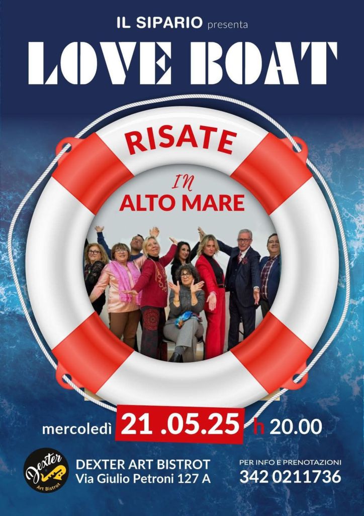 Il Dexter sotto la guida di Antonio Lorusso,è divenuto un cenacolo di arte ,musica e cultura della nostra città,e mercoledì 21 Maggio 2025 ha ospitato sul suo palco lo spettacolo Love Boat a cura del Sipario -scuola,di recitazione a Bari con la direzione artistica di Teresa Conforti-.