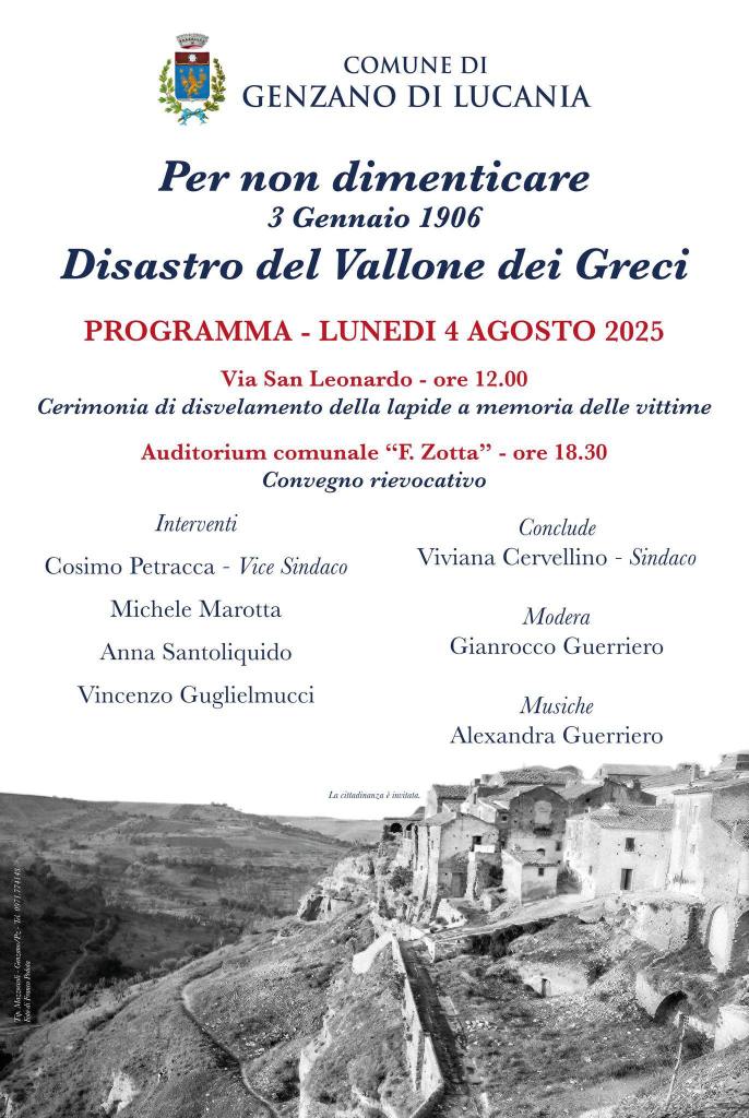 Il 4 agosto 2025, alle ore 12:00, ci ritroveremo in tanti in Via San Leonardo, al paese vecchio, per commemorare insieme le vittime di quel disastro. Una targa commemorativa verrà scoperta, a imperitura memoria di quell’evento tragico e delle vite perdute. Sarà presente il sindaco Viviana Cervellino, che ha fortemente sostenuto l’iniziativa di restituzione storica, in nome del rispetto e della giustizia verso i concittadini del passato.
