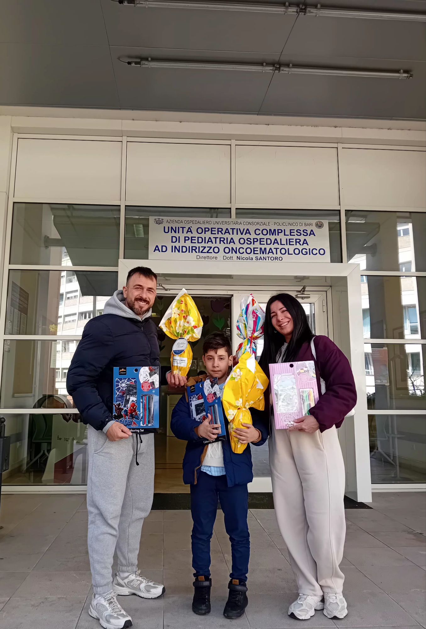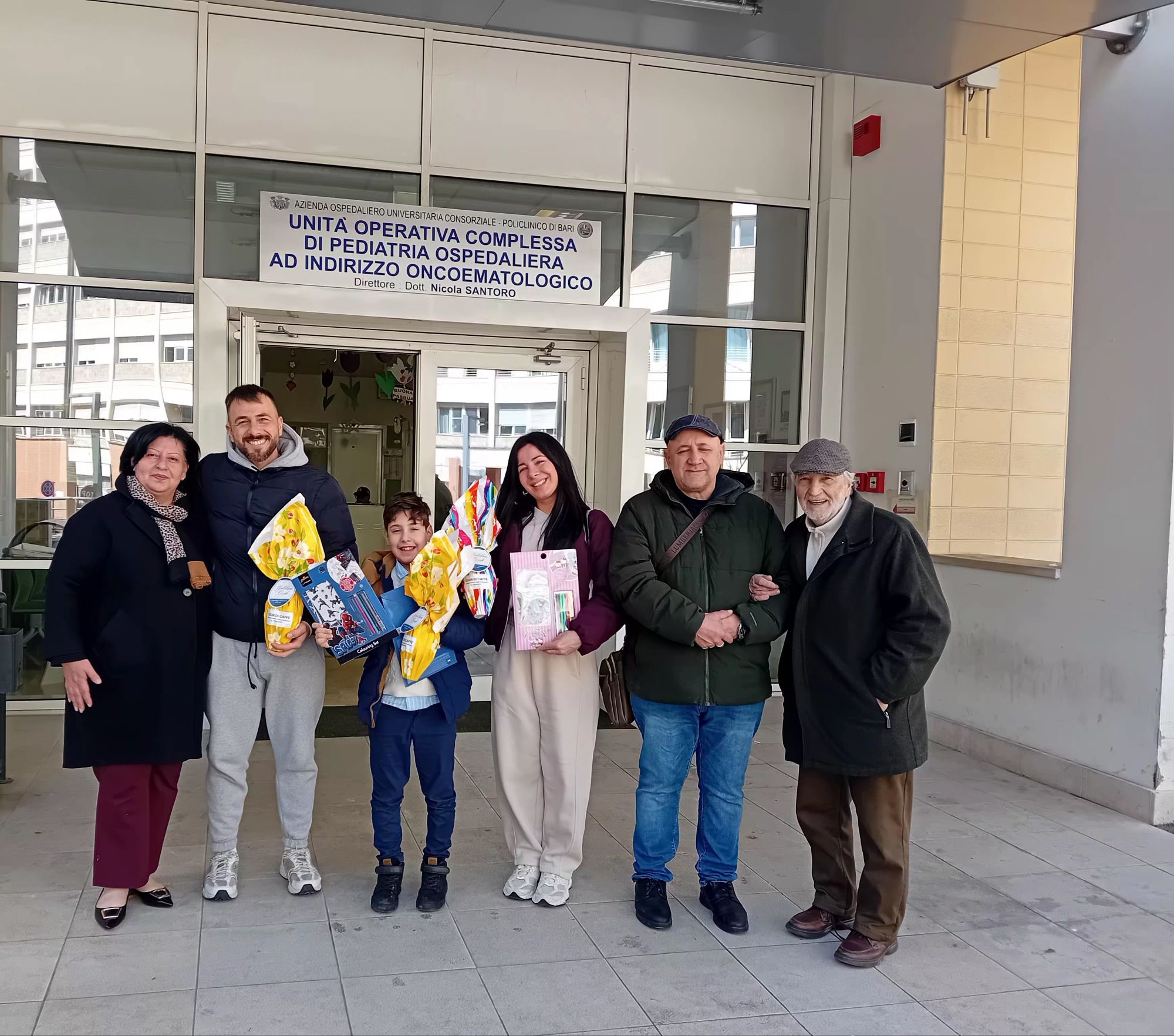 Donato Favia e Giulia Belviso,rispettivamente zio e nipote,sono i gestori di un piccolo ma accogliente e ospitale bar “Cuor di Caffè ” in via Roccaporena 15 a Carbonata 2,che questa mattina insieme al piccolo Gabriel Maselli in compagnia di un gruppo di amici volontari,hanno portato ,attraverso le uova di Pasqua (offerte con generosità da Cuor di Caffè)un dolce pensiero ricco di positività ai bambini del Reparto Oncoematologia Pediatrica del Policlinico di Bari.
